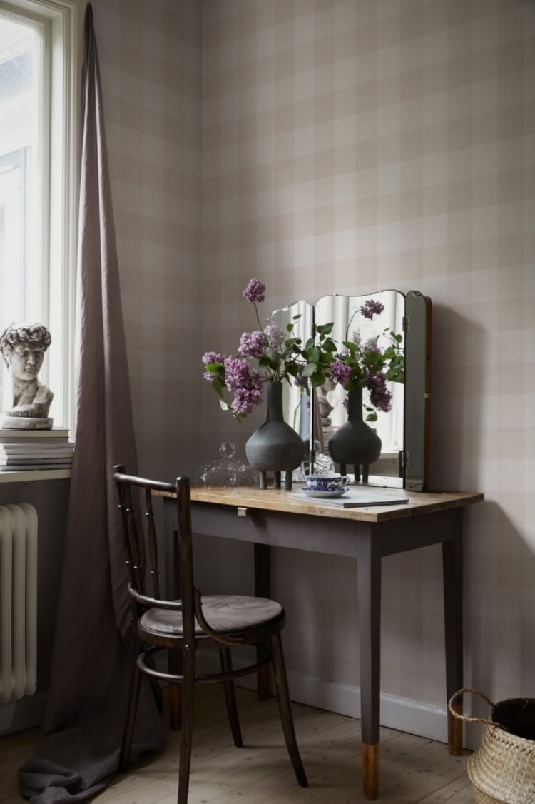 Lykke is een behang dat het klassieke ruitpatroon een nieuw leven inblaast. Deze muurbekleding van Sandberg uit de Villa Dalarö II collectie heeft een heerlijk zachte textielgevoel, waardoor het behang een warm gevoel geeft aan jouw interieur. Een prachtig behang dat perfect is voor een klassiek, modern en sfeervol interieur.