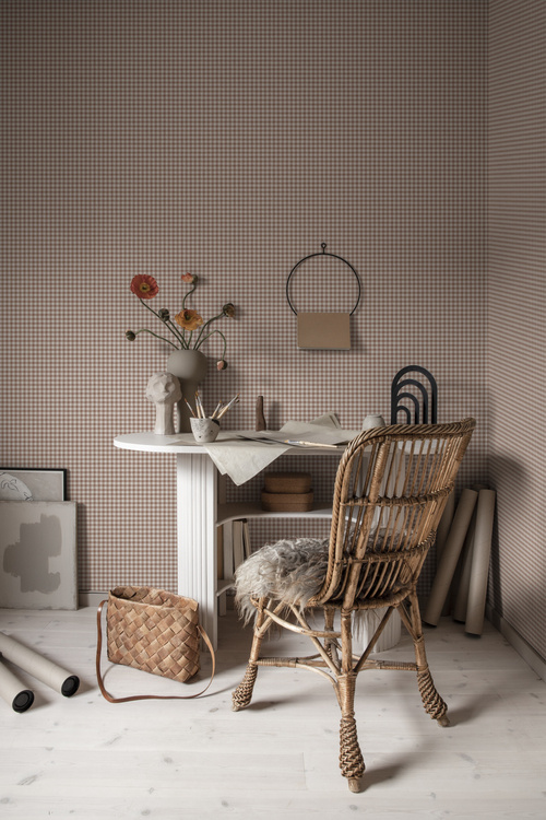 Ruta behang toont een symmetrisch geweven klein formaat ruitpatroon. Ruta betekent vierkant in het Zweeds. Deze muurbekleding van Sandberg, uit de collectie Essentials, is een perfect behang voor zowel een klassiek als eigentijds interieur.