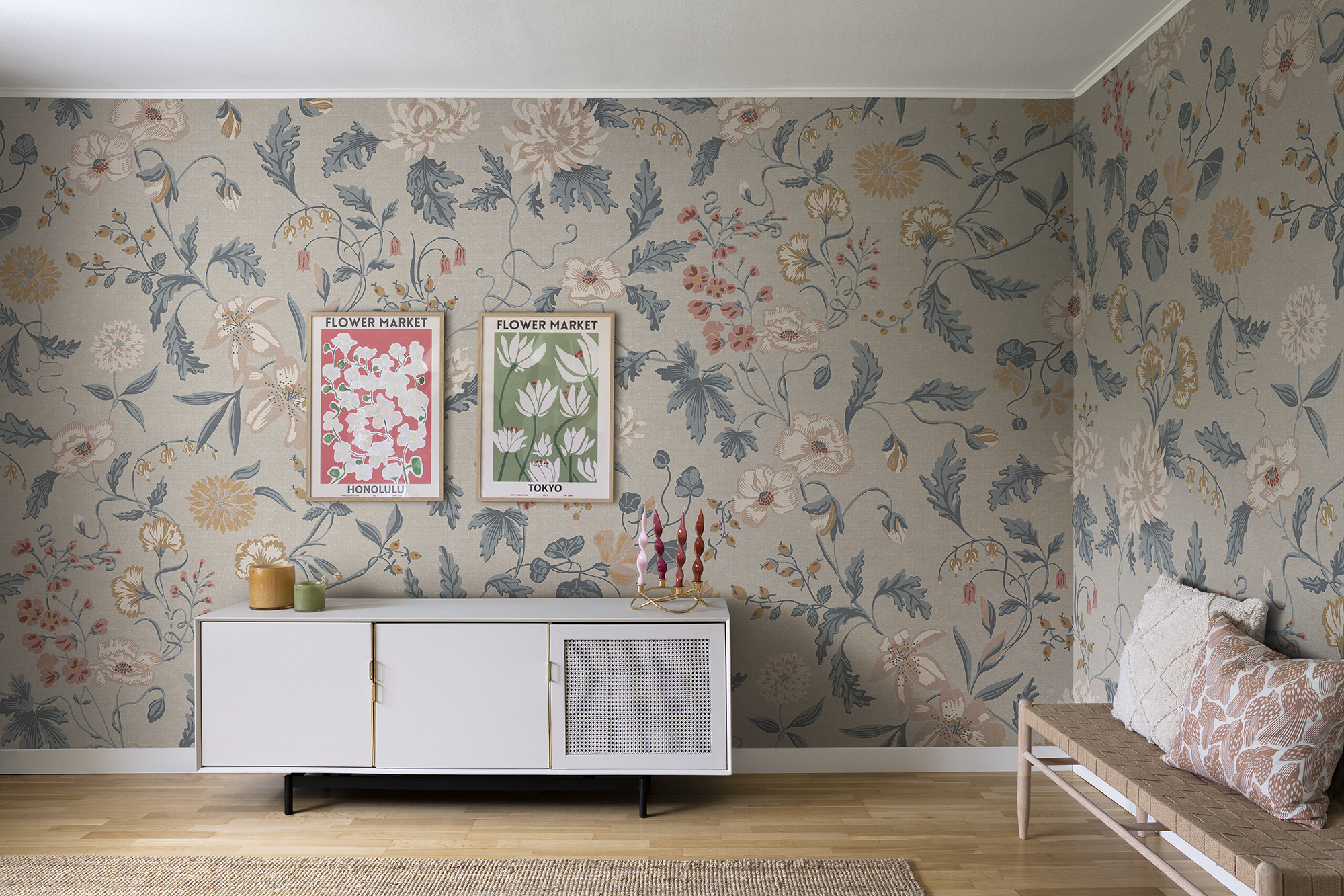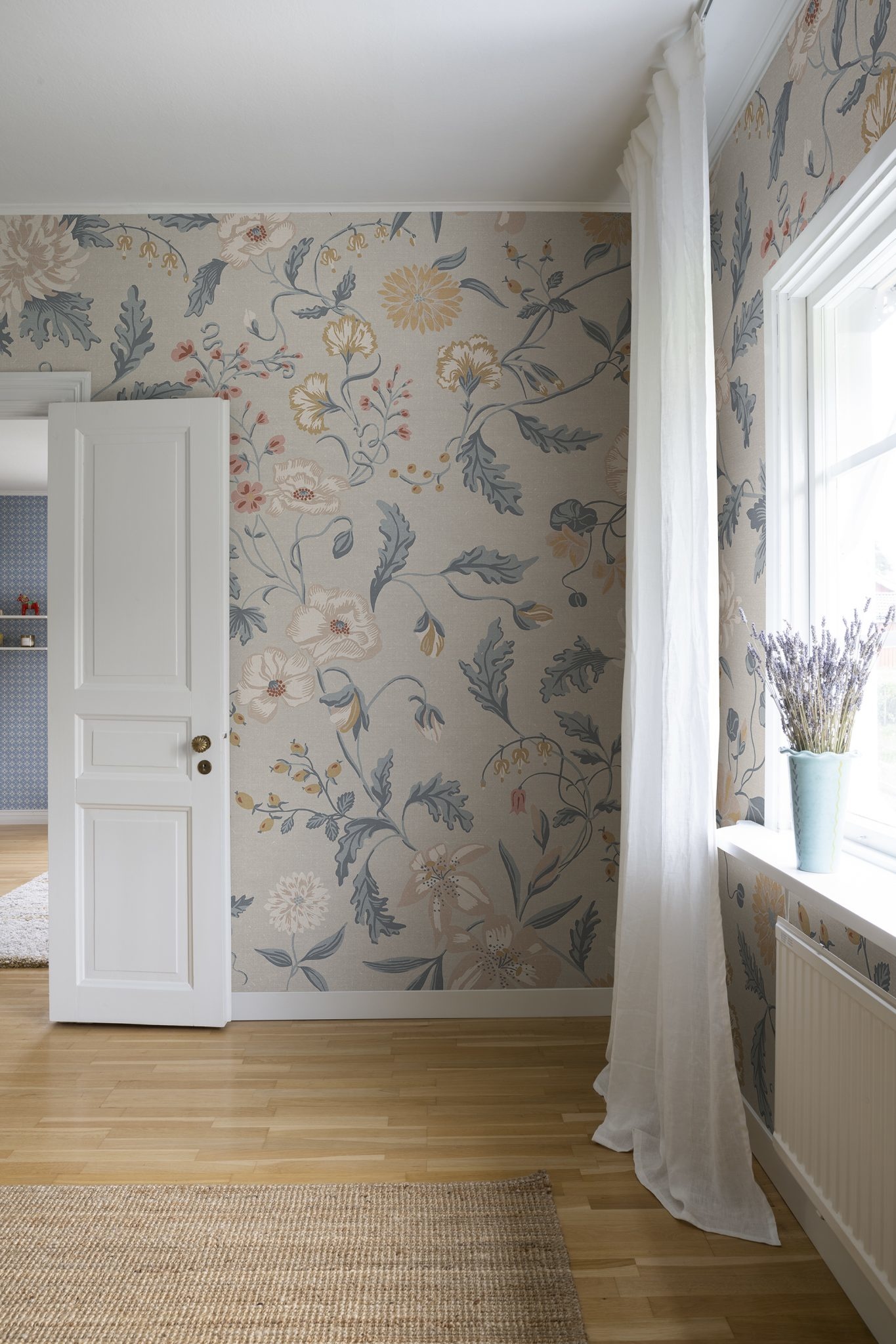 Een heerlijke aanhoudende bloembonanza. Een vergrote versie van "Till Karin." Ook in de kamer van hun dochter Suzanne vind je decoratieve muurschilderingen. Een prachtig handgeschilderd bloemenbordure die ze mede heeft gemaakt.