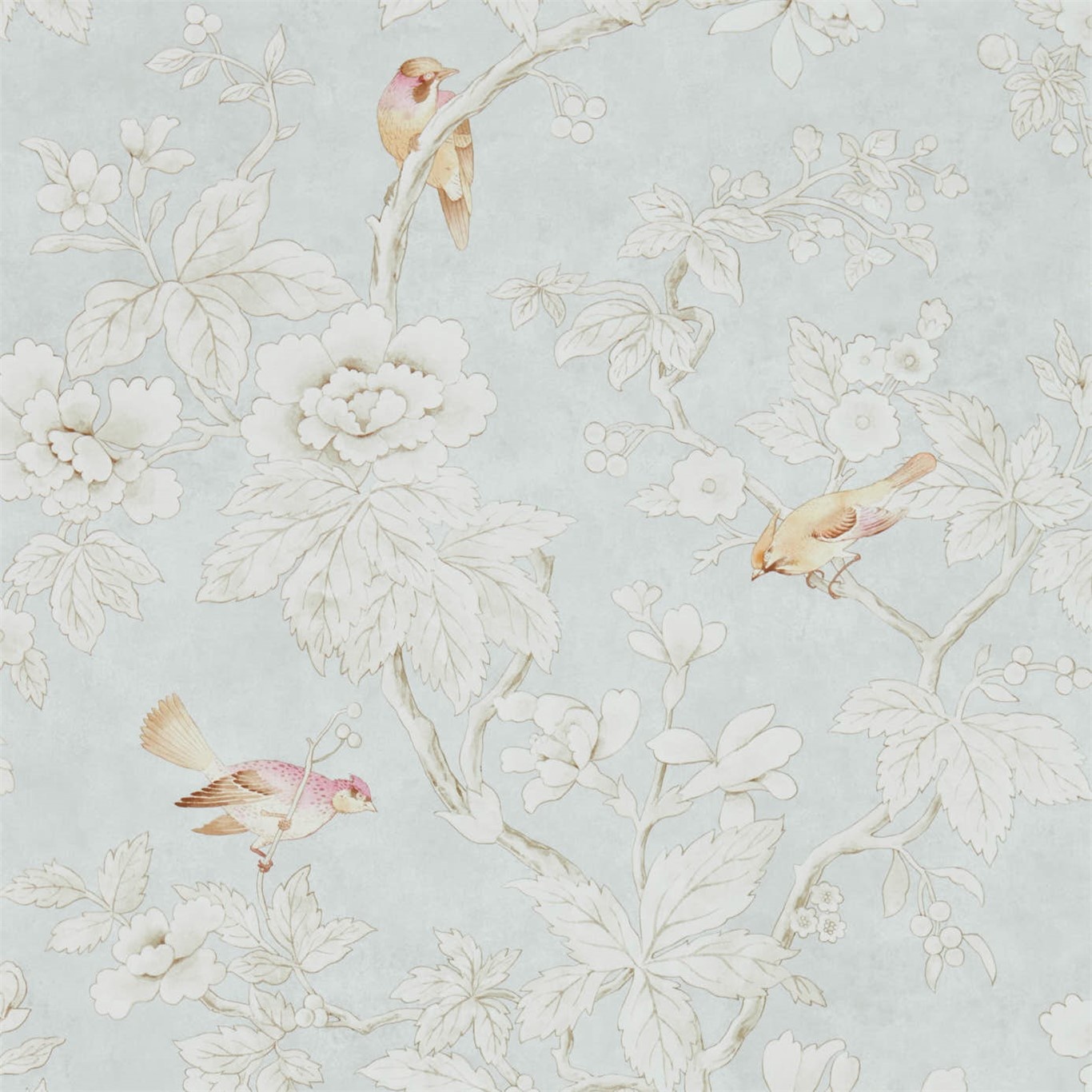 Geïnspireerd door een archiefdocument, trekken takken van een overvloedige boom en zingende vogels over dit schilderachtige behangontwerp in gedempte, frisse kleuren. Gebruik dit ontwerp om een vrouwelijke touch toe te voegen aan elke kamer van het huis en combineer met de stof met dezelfde naam.