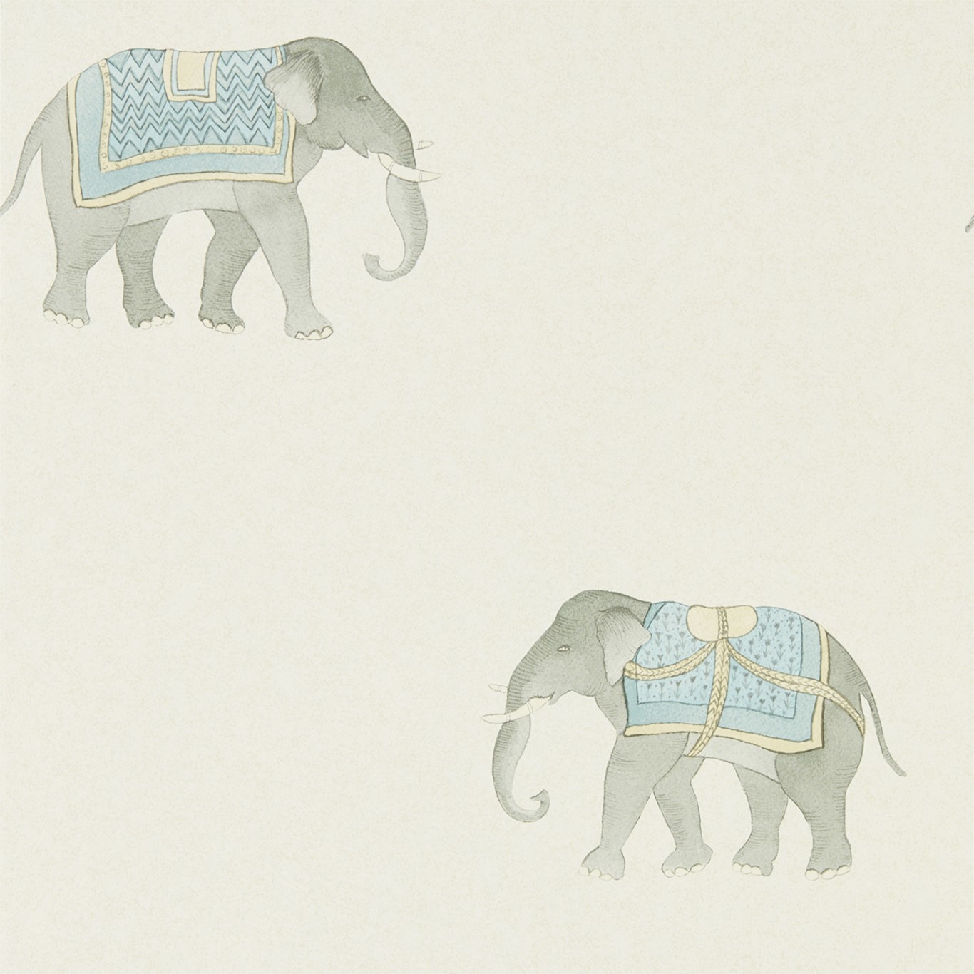 Sanderson's India-behang was oorspronkelijk geschilderd in waterverf en toont een Indische olifant die marcheert over een zware, getextureerde behangachtergrond, waardoor een zacht watermerkeffect ontstaat in delicate kleurstellingen. Een gespreksstarter voor gangen en ontvangstruimtes.