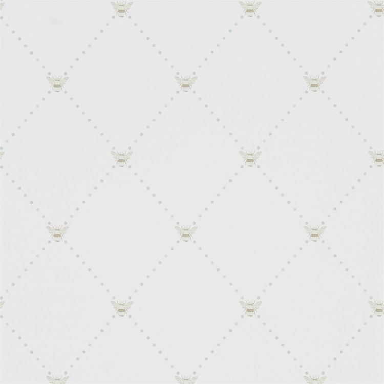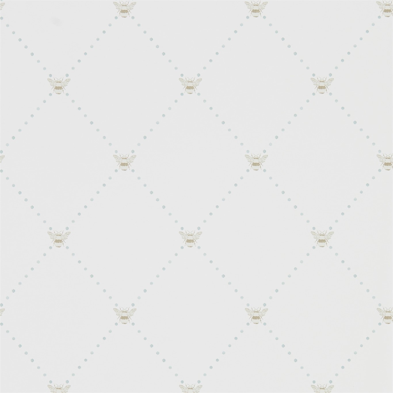 Prachtig geschilderde hommels worden op dit behangontwerp geplaatst over een delicate diamantlatwerk. Een lichte en luchtige manier om patronen in een eenvoudige kamer te introduceren en verkrijgbaar in nauwelijks-daar kleuren.