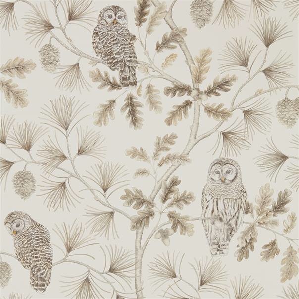 Dit behang met brede breedte toont een sneeuwuil, het symbool van wijsheid en behulpzaamheid, en is diepdruk gedrukt om de fijne kneepjes van het originele kunstwerk vast te leggen. De zachte kleuren zien er prachtig uit naast krijtmuren en geweven vlaktes, of combineren met de stof met dezelfde naam.