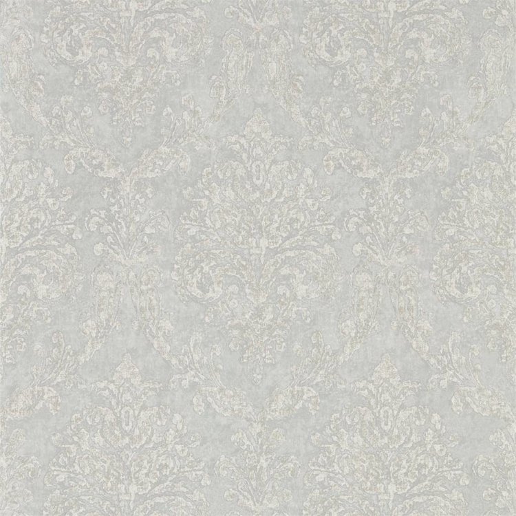 Dit gestencilde damast heeft een vrij vloeiende, verontruste rand.