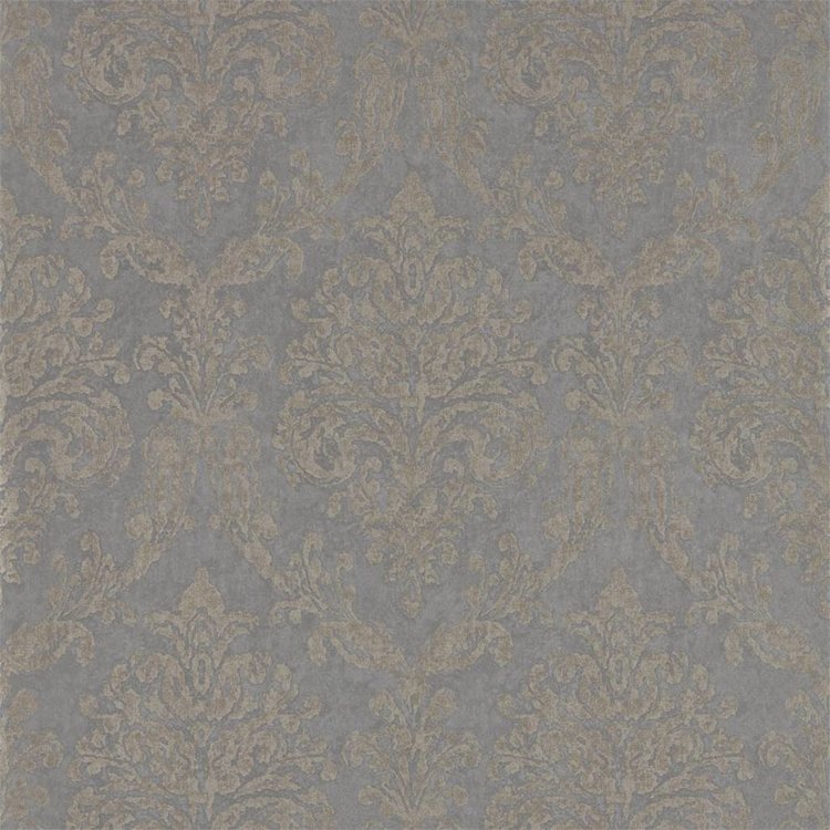Dit gestencilde damast heeft een vrij vloeiende, verontruste rand.