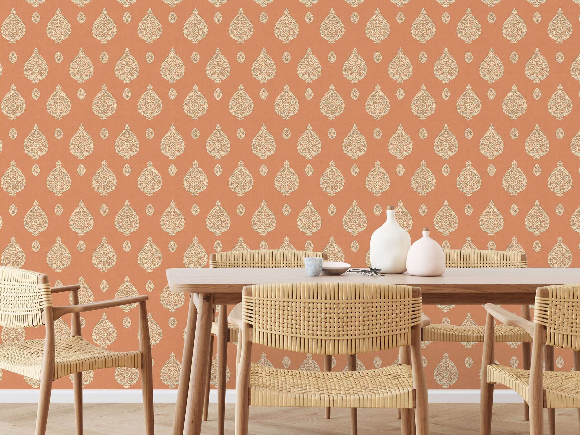 Deze muurbekleding is geschikt voor interieurs die karakter, verfijning en een vleugje klassieke elegantie willen combineren met een eigentijdse uitstraling.