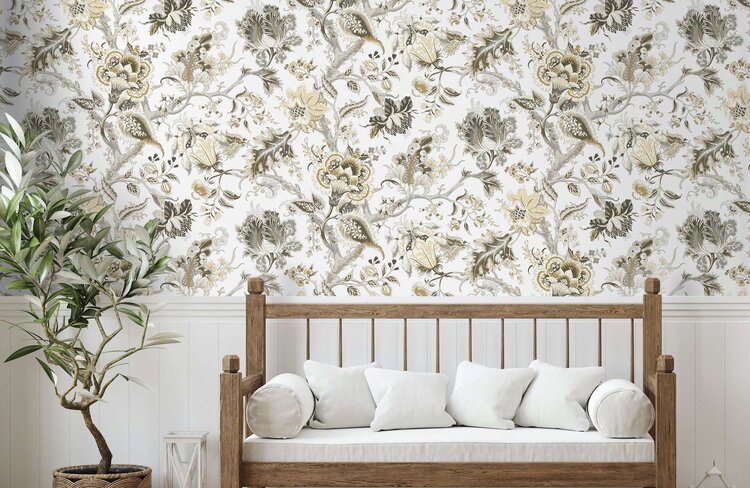 De Birchgrove Collectie van The Design Archives brengt een eclectische mix van klassieke stoffen uit The Design Archives opnieuw tot leven als luxe behang. Denk aan grootse chinoiserie-bloemen, elegante Art Deco-details en symmetrische Aziatische motieven, allemaal uitgevoerd in een stijlvol kleurenpalet.