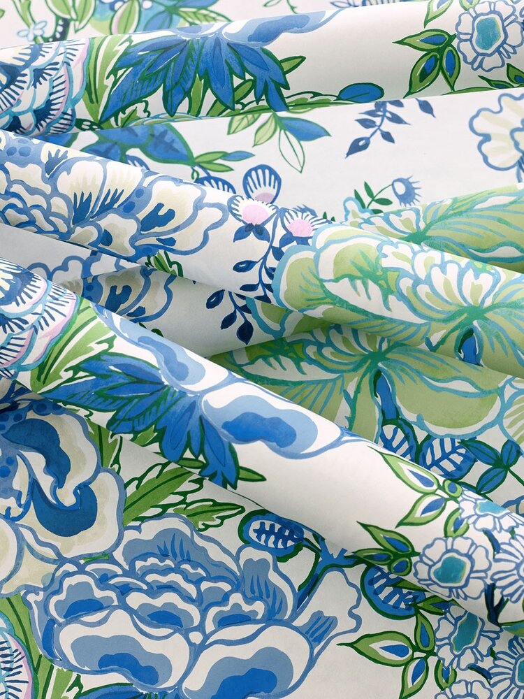 De luxe behangcollectie van het Amerikaanse merk Thibaut bevat zowel traditionele en klassieke patronen als tropische en geometrische prints.