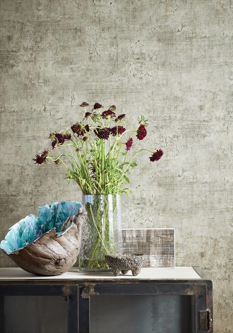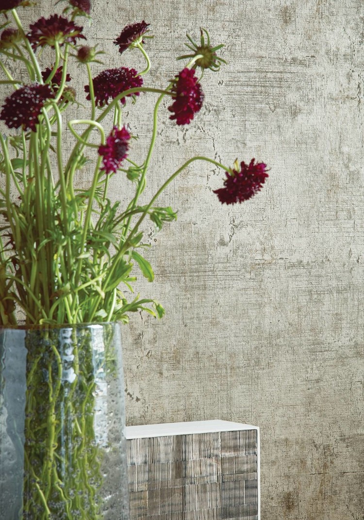 Het behangontwerp van Carro is een kruising tussen steen en een antieke Italiaanse spiegel. De gelaagde structuren en metaalachtige kleuren geven het een verouderd effect. Weefselkunst was de inspiratie voor dit faux schaalpatroon. De verhoogde inkt van de diepdruk geeft een subtiele textuur en dimensie.