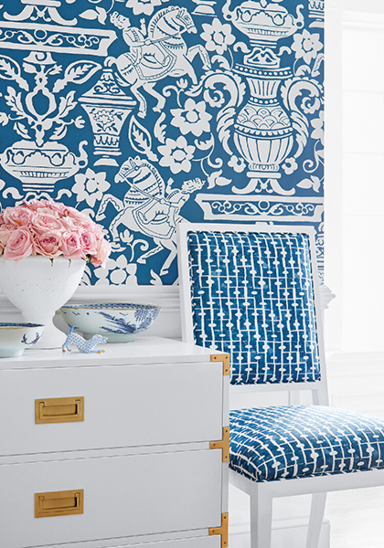 • De luxe behang collectie van het Amerikaanse merk Thibaut bevat zowel traditionele en klassieke patronen als tropische en geometrische prints