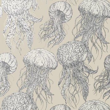 Jelly Fish behang uit de Thibaut Summer House collectie heeft prachtige gestyleerde kwallen. Ideaal om toe te passen in bijvoorbeeld een badkamer of op het toilet. Het dessin uit de Thibaut Summer House collectie, dat nog meer zomerse behang patronen heeft, heeft een bijpassende stoffen collectie. Ideaal om mee te combineren.
