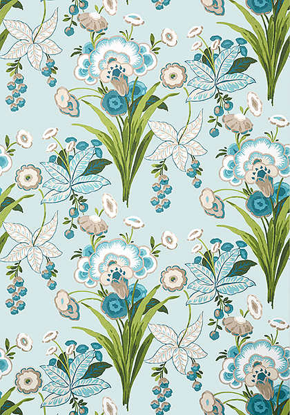 Pasadena behang is een helder bloemenpatroon dat is overgenomen van een antiek document uit de jaren dertig.