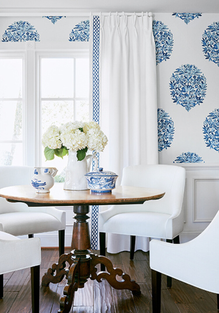 • De luxe behang collectie van het Amerikaanse merk Thibaut bevat zowel traditionele en klassieke patronen als tropische en geometrische prints