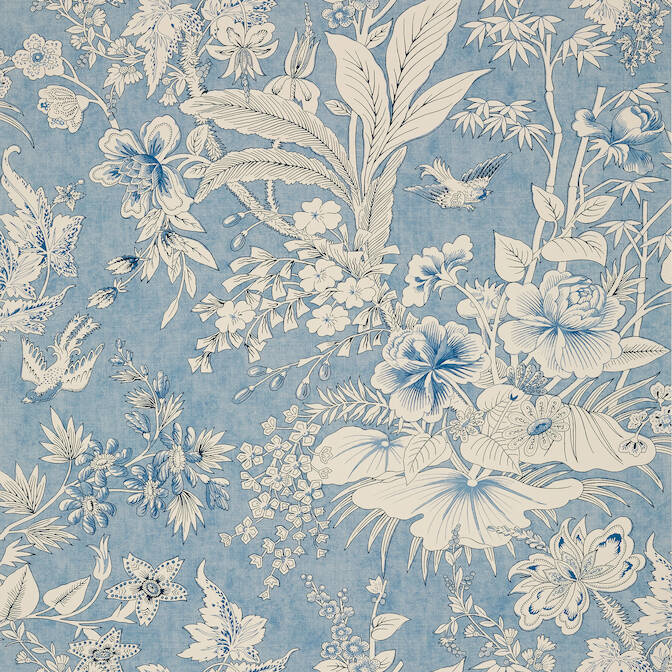Rosalind is een behang dat geïnspireerd is op de weelderige Engelse tuinen. Deze muurbekleding van Thibaut uit de Grand Palace collectie toont prachtige bloemen, verweven met planten en vogels. Een botanisch behang dat perfect is voor een klassiek, tijdloos en sfeervol interieur.