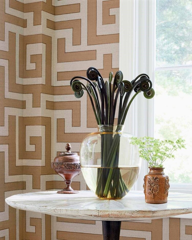 De luxe behangcollectie van het Amerikaanse merk Thibaut bevat zowel traditionele en klassieke patronen als tropische en geometrische prints
