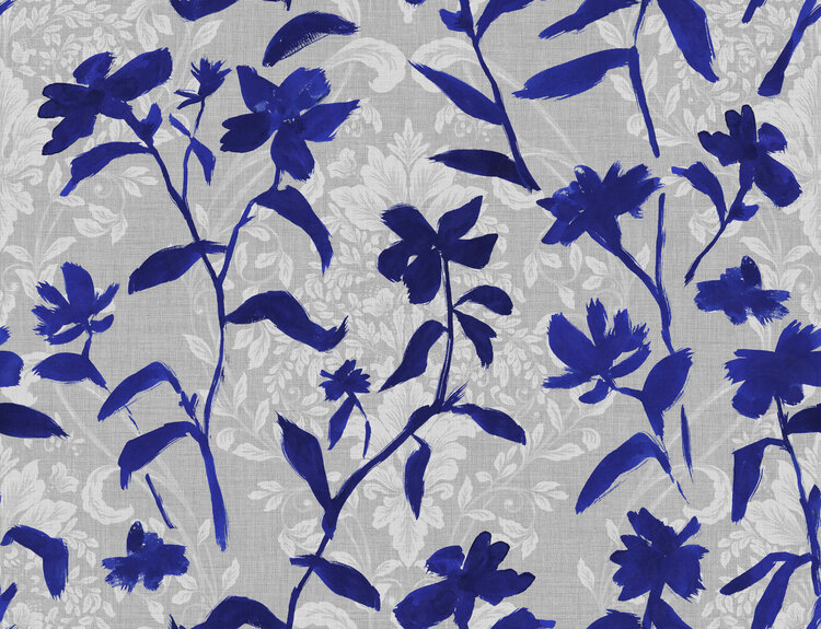 Tres Tintas behang Blooming Damask Blue - PL5002-2