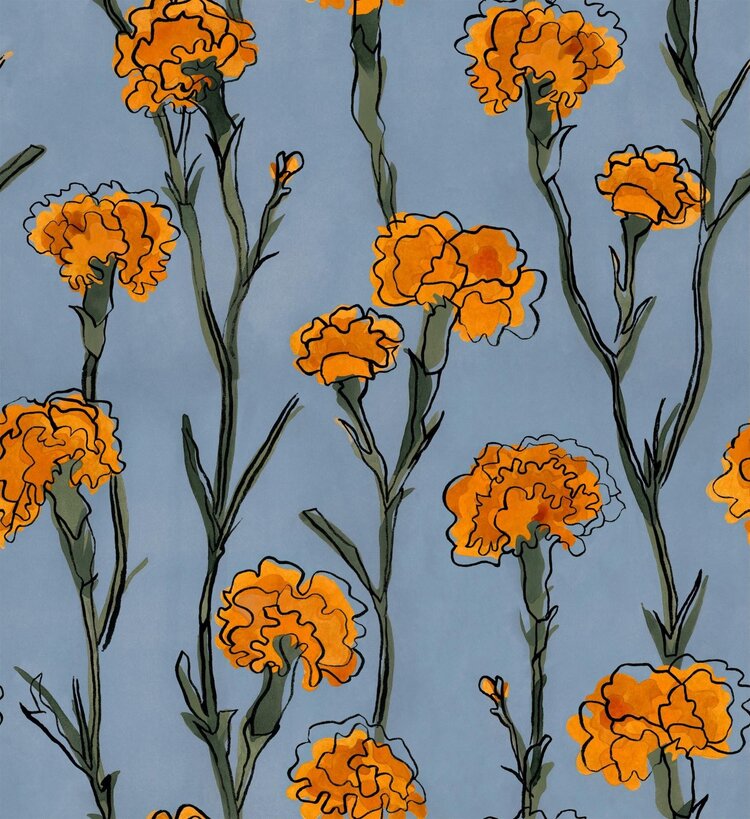 Tres Tintas behang Clavelitos Blue - SO5203-2
