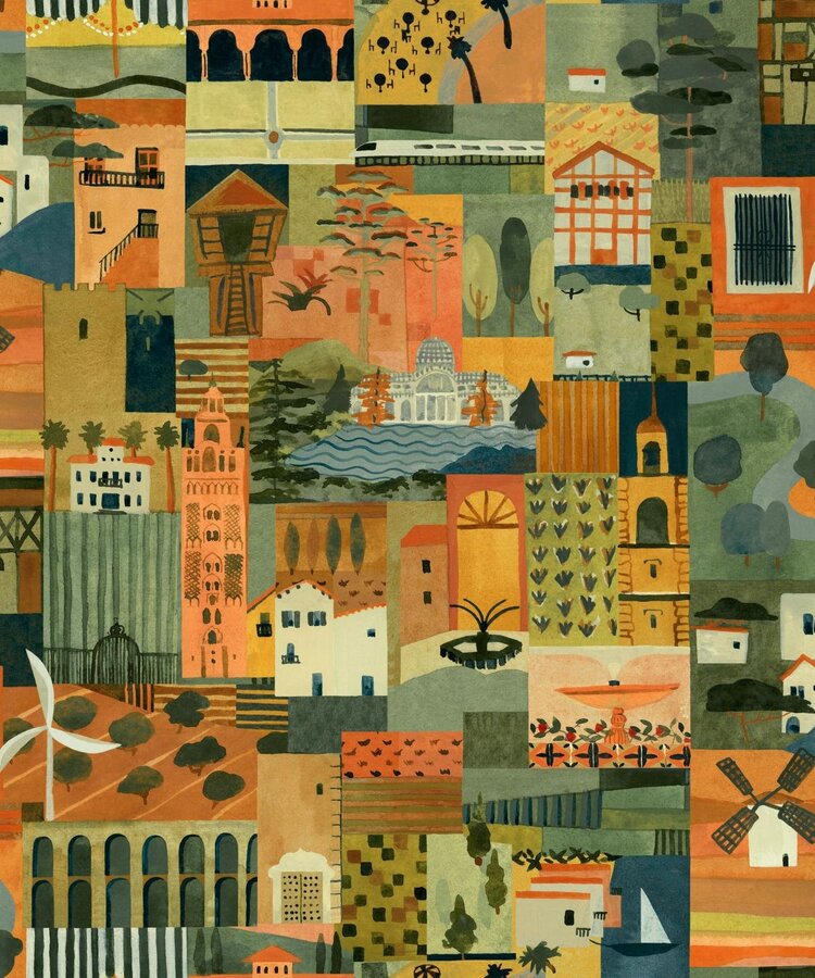 De collectie Solera van Tres Tintas toont een kleurrijke kijk op feesten, lekker eten, mooie landschappen en Spaans vakmanschap. Alles zit vol vrolijke tradities die je inspireren om van het leven te genieten. Het laat momenten zien die belangrijker zijn dan de tijd – het gaat om wat je voelt en beleeft. Dit behang past perfect in een interieur met een bohemian, mediterraanse of vintage stijl, of als opvallende statementmuur in een modern huis, en komt vooral tot zijn recht in warme, levendige ruimtes zoals de keuken, eetkamer of hal.
