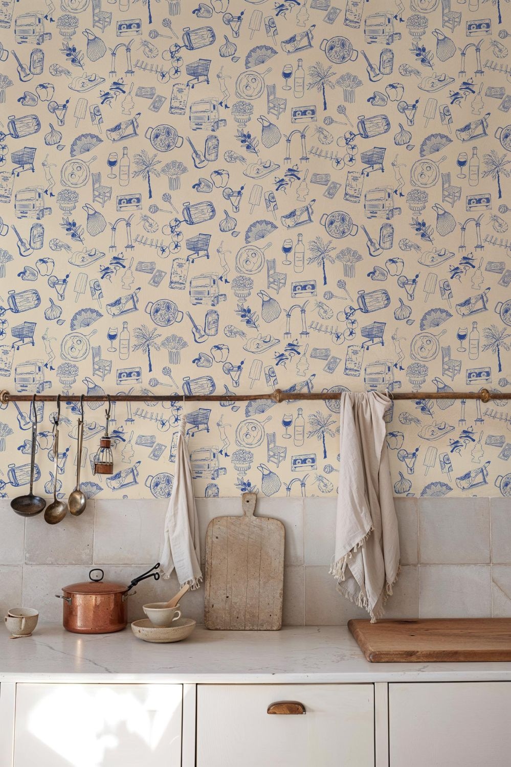De collectie Solera van Tres Tintas toont een kleurrijke kijk op feesten, lekker eten, mooie landschappen en Spaans vakmanschap. Alles zit vol vrolijke tradities die je inspireren om van het leven te genieten. Het laat momenten zien die belangrijker zijn dan de tijd – het gaat om wat je voelt en beleeft. Dit behang past perfect in een interieur met een bohemian, mediterraanse of vintage stijl, of als opvallende statementmuur in een modern huis, en komt vooral tot zijn recht in warme, levendige ruimtes zoals de keuken, eetkamer of hal.
