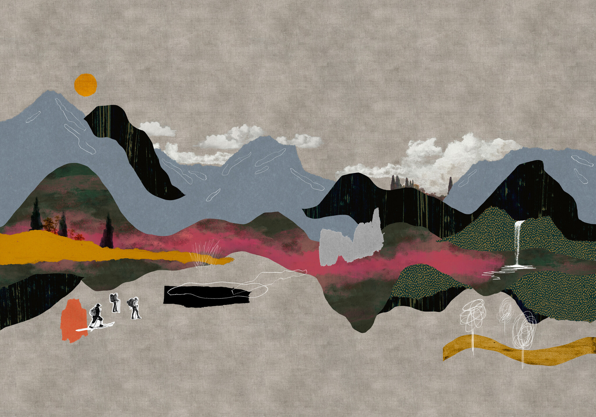 Tres Tintas mural Landscape Collage Grey - M5007-2