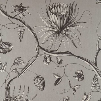 Geïnspireerd door een 18e-eeuws Engels toile, is dit ontwerp gemoderniseerd door zijn monumentale schaal. Dit 137 cm brede behang wordt verkocht door de herhaling van 189,2 cm en veelvouden daarvan.